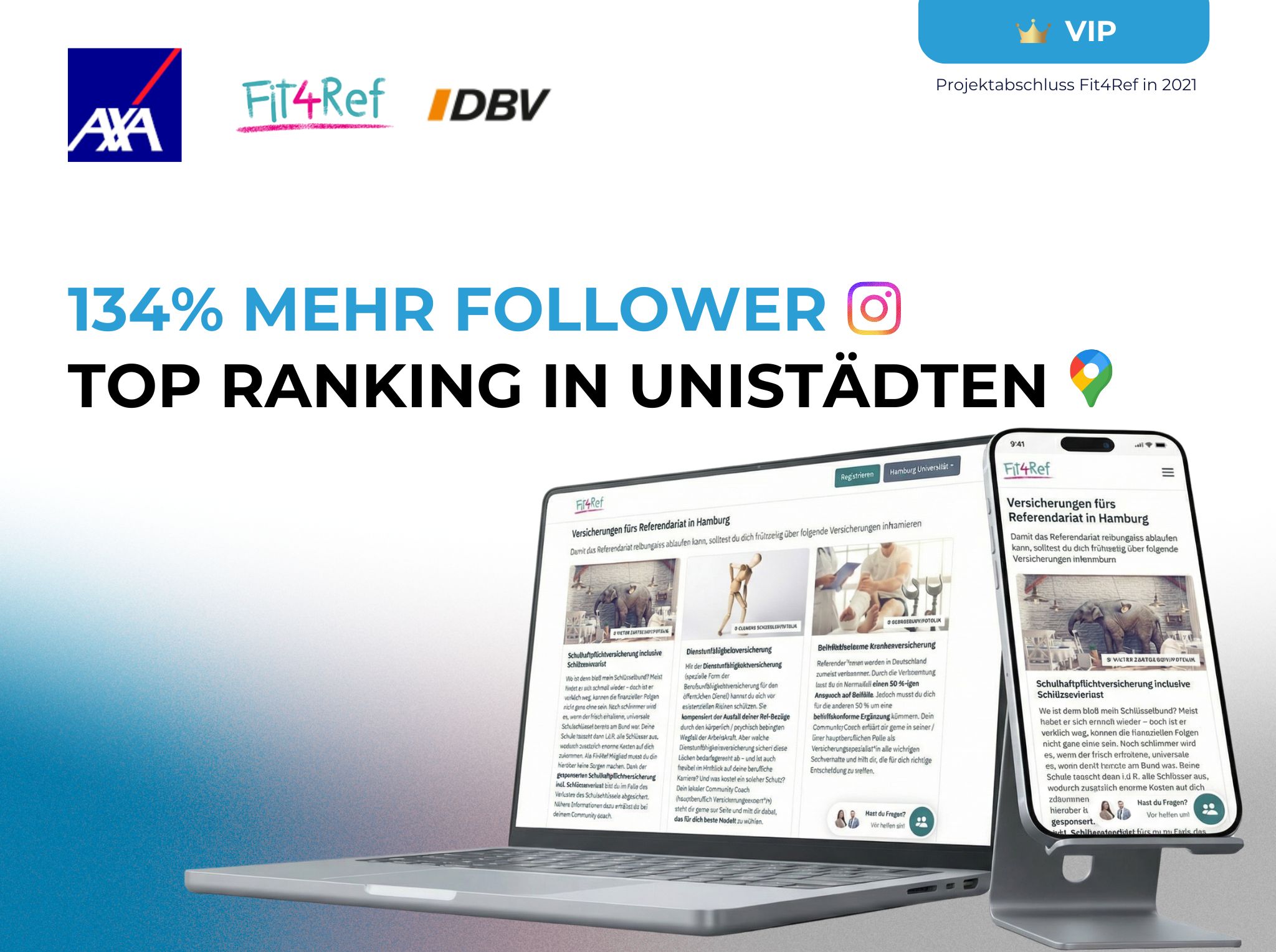 Wir haben den Instagram-Account für Fit4Ref mit 8.000 Followern übernommen und mit verschiedenen Formaten um 134% skaliert und sukzessive neue Leads gewonnen für u.a beihilfekonforme Krankenversicherung.